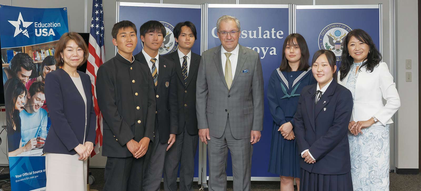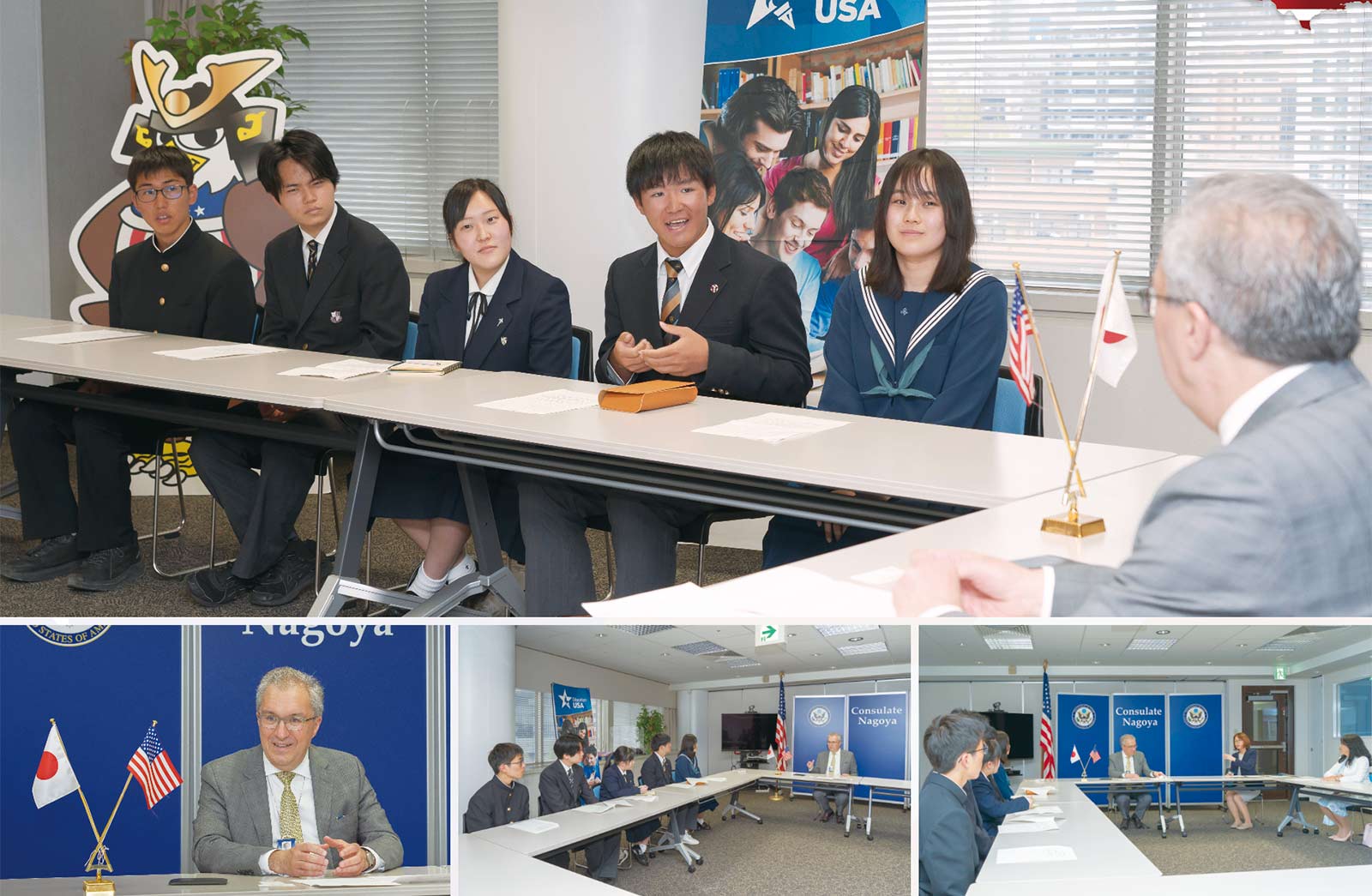 新しい年度を迎えて気持ちも新たになる春爛漫の4月、名古屋にある米国領事館を訪ねました。友好の絆で結ばれた米国の窓口でもある領事館では、首席領事のマシュー・センザーさんがにこやかに出迎えてくださいました。私たちはこの日、英語で質問することにチャレンジ。緊張しながらも興味深いセンザーさんのお話に聞き入ってしまいました。