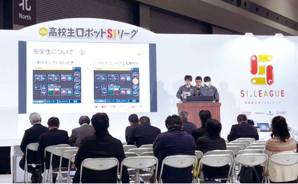 高校生ロボットSIリーグは、ロボットシステムインテグレータ(ロボットSIer)企業と連携してロボットシステムの構築に取り組む競技会です。企業のサポートを受け、提示された課題に対して最適なロボットシステムを設計し、制御プログラムを作成して、大会当日にデモンストレーションやプレゼンテーションにより、構築したロボットシステムの披露をします。